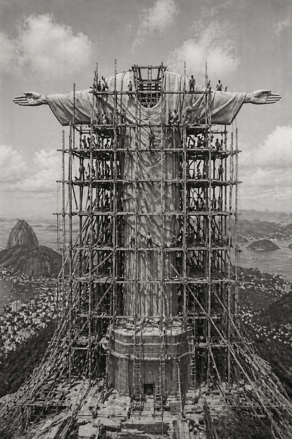 La costruzione ha presentato molte difficoltà pratiche. Il Corcovado è una montagna ripida e difficile da raggiungere, quindi i materiali sono stati trasportati con un treno speciale che già esisteva per portare i visitatori. Gli operai hanno lavorato in condizioni difficili, spesso con vento forte, pioggia e cambiamenti rapidi del clima. La statua è stata costruita in cemento armato, una tecnica moderna per l'epoca, e poi rivestita con migliaia di piccoli pezzi di pietra saponaria. Questo materiale è stato scelto perché è resistente e ha una superficie liscia. Una curiosità interessante è che molti di questi piccoli pezzi sono stati incollati a mano, uno per uno, e spesso sono stati preparati da donne che hanno lavorato con grande pazienza su ogni dettaglio.